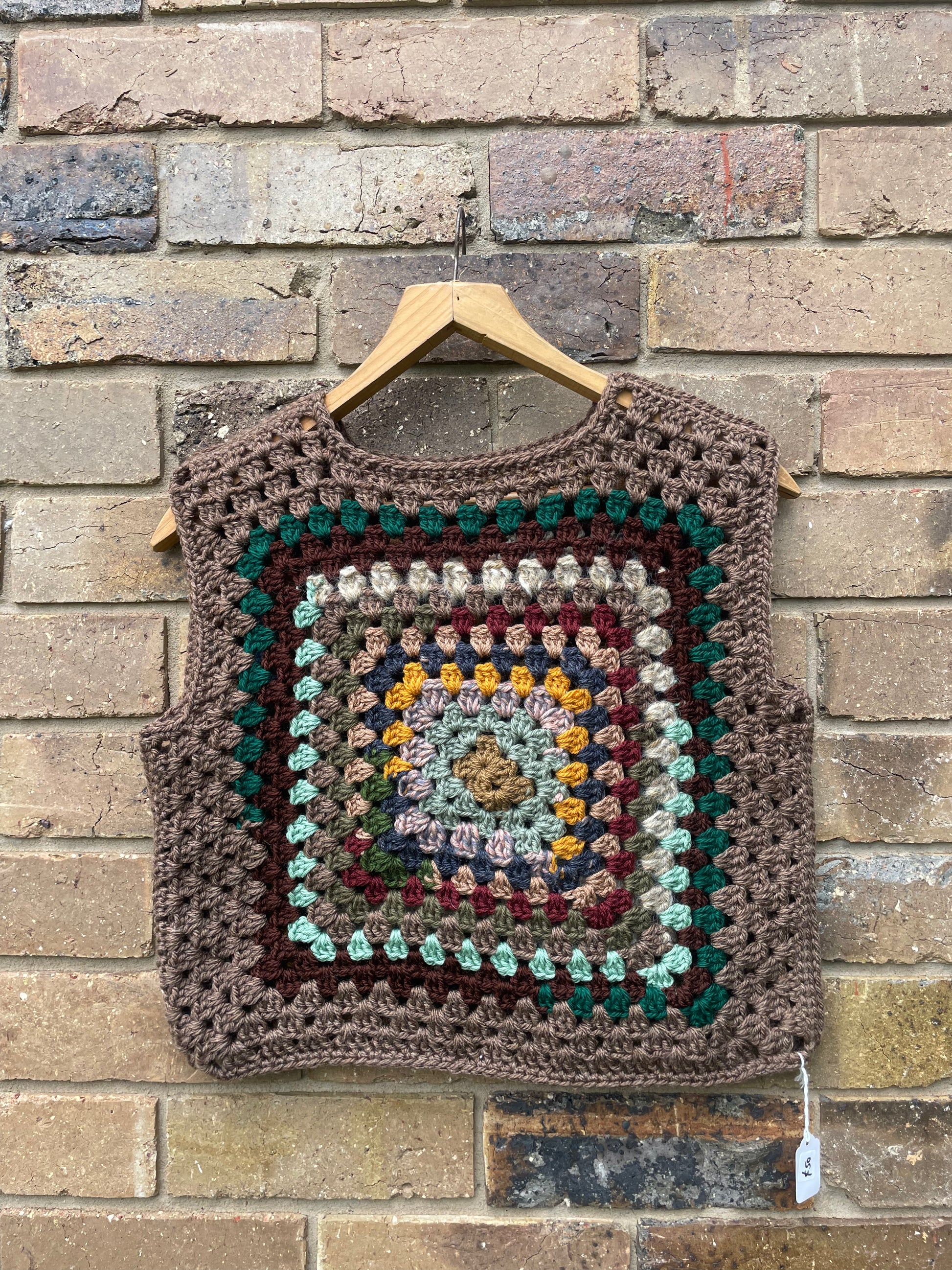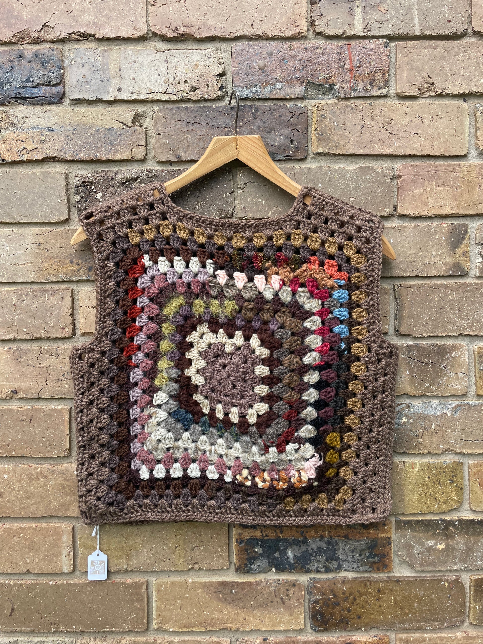 HeyTully Cropped Starburst Granny Square crochet sweater. Perfect for those in-between months. Size L. Would fit size 14-16 best. Last pic for fit reference. Shown is a size M on a size 10-12.