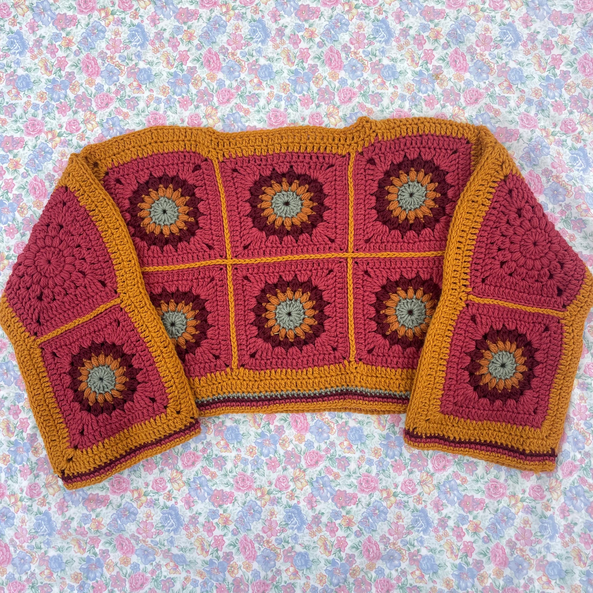 HeyTully Cropped Starburst Granny Square crochet sweater. Perfect for those colder months. Size S. Would fit size 6-8 best. Last pic for fit reference. Shown is a size M on a size 10-12.