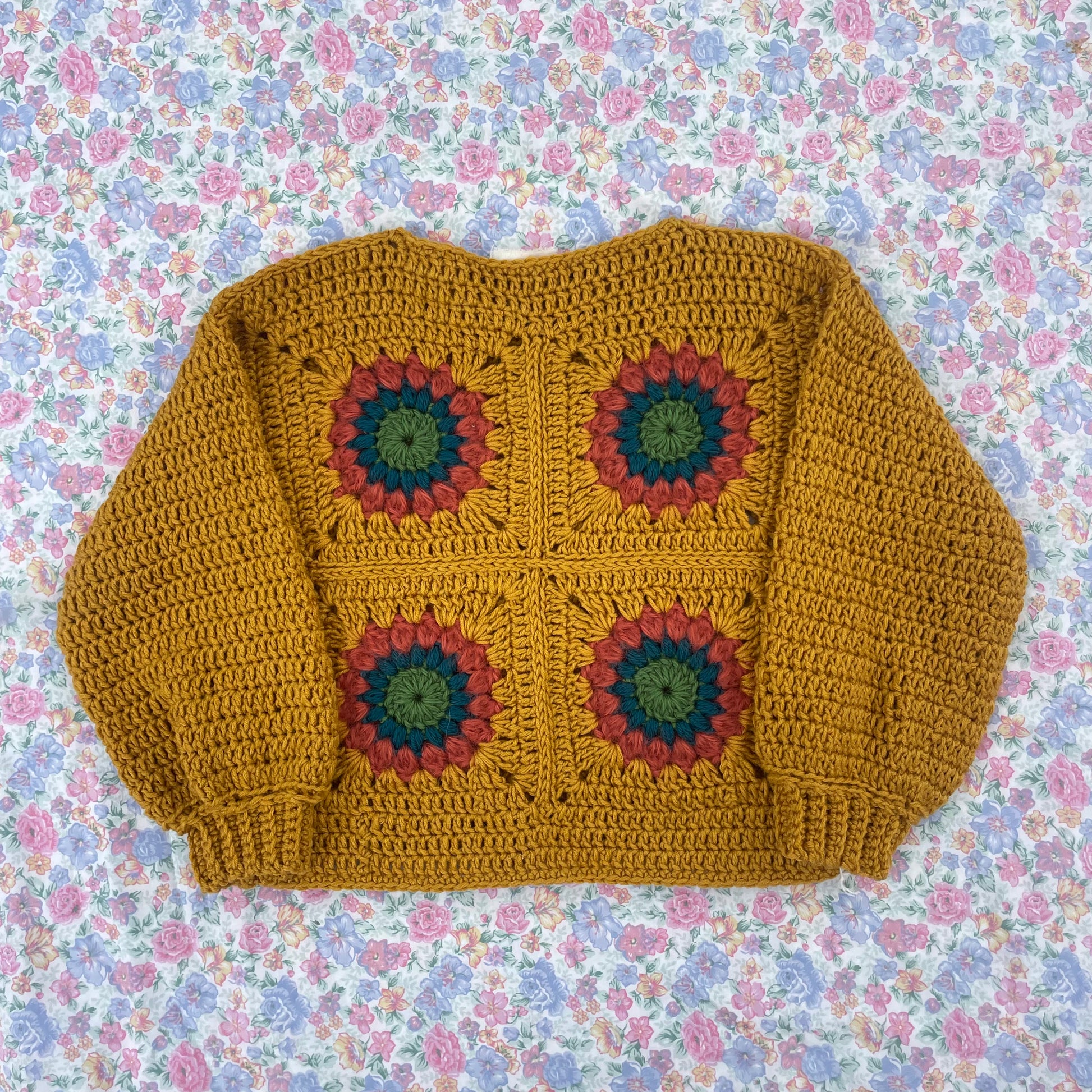 HeyTully kids flower crochet sweater. Perfect for those colder months. Size kids M. Would fit kids size 5-6 best. For fit reference, Freddie is a size 4 and wears a HeyTully Kids S.