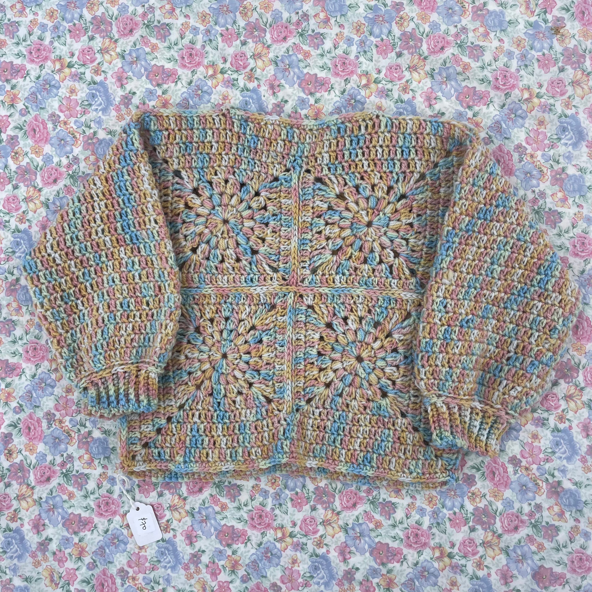 HeyTully kids flower crochet sweater. Perfect for those colder months. Size kids S. Would fit kids size 3-4 best. For fit reference, Freddie is a size 4 and wears a HeyTully Kids S.
